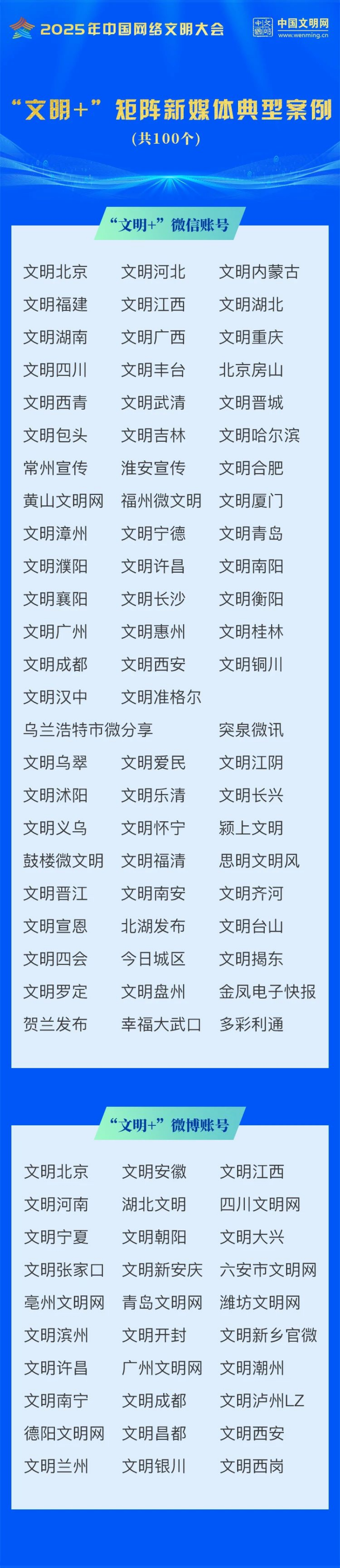 6月10日下午,2025年中国网络文明大会党的创新理论网上传播分论坛在安徽合肥举行。论坛上,中国精神文明网发布“文明+”矩阵新媒体典型案例,并现场展示了100家“文明+”矩阵新媒体典型案例账号。