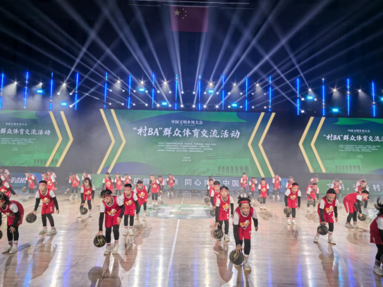 10月28日,中国文明乡风大会“村BA”群众体育交流活动在陕西延安举办。活动现场,2025年全国“村BA”冠军福建晋江队对阵“村BA”民星队,气氛热烈、激情四溢,巩晓彬、郑海霞、焦健等篮球名家现场指导助阵,3000余名观众到场观赛。