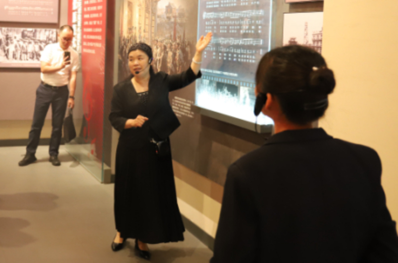 耗时两个月,她终于打磨出独具特色的专属讲解词——既有历史厚重感,又有音乐灵动性。在“人民的心声 历史的旋律”主题展中,她不会直陈列展,而是笑着向游客发出邀请:“同志们,当年的劳动号子就是这样为战士们加油鼓劲的,我们一起试试看,把这股劲儿唱出来!”随即,她便领着游客齐声高唱“千家万户哎嗨哎嗨呦,把门开哎嗨哎嗨呦……”歌声落定,展厅里总会爆发出热烈的掌声。