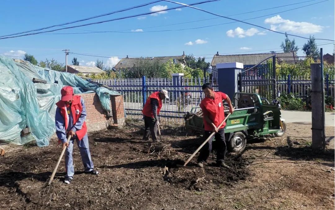 伊勒门村党员志愿者义务为脱贫户清理房屋院落卫生。吉林市文明办供图