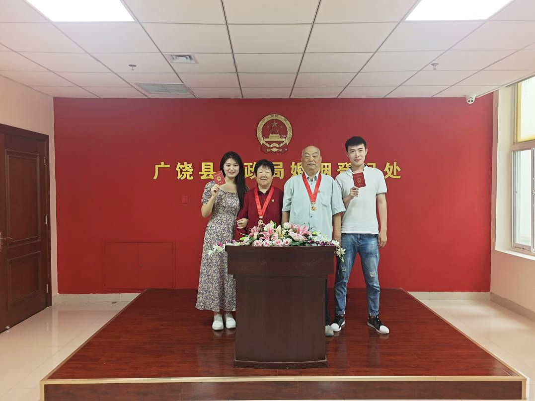 邀请老党员金婚夫妇为新人颁证。广饶县文明办供图